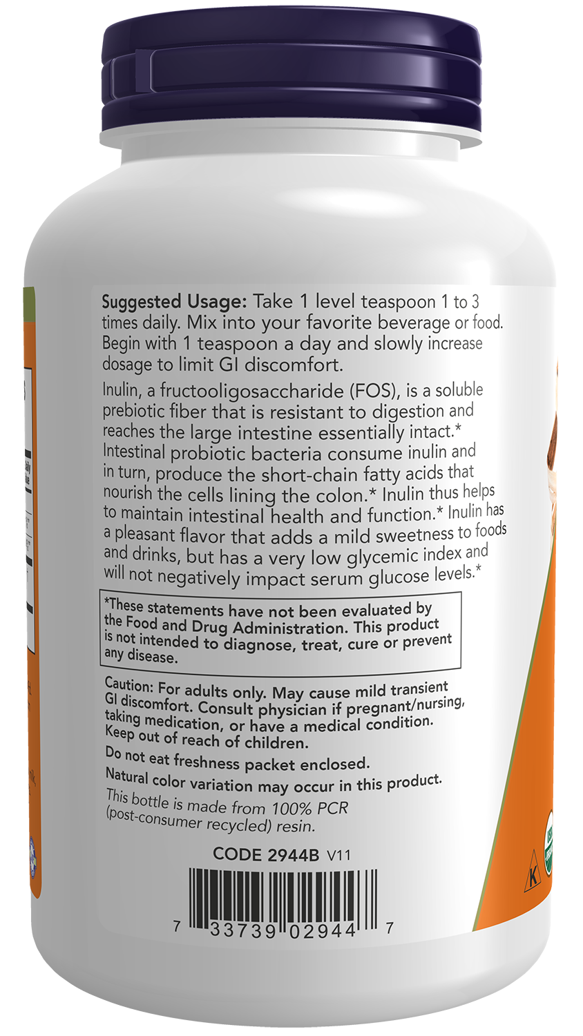 Инулин, фруктоолигосахарид (ФОС), это растворимая пребиотическая клетчатка, которая устойчива к перевариванию и достигает толстой кишки практически в неизменном виде.